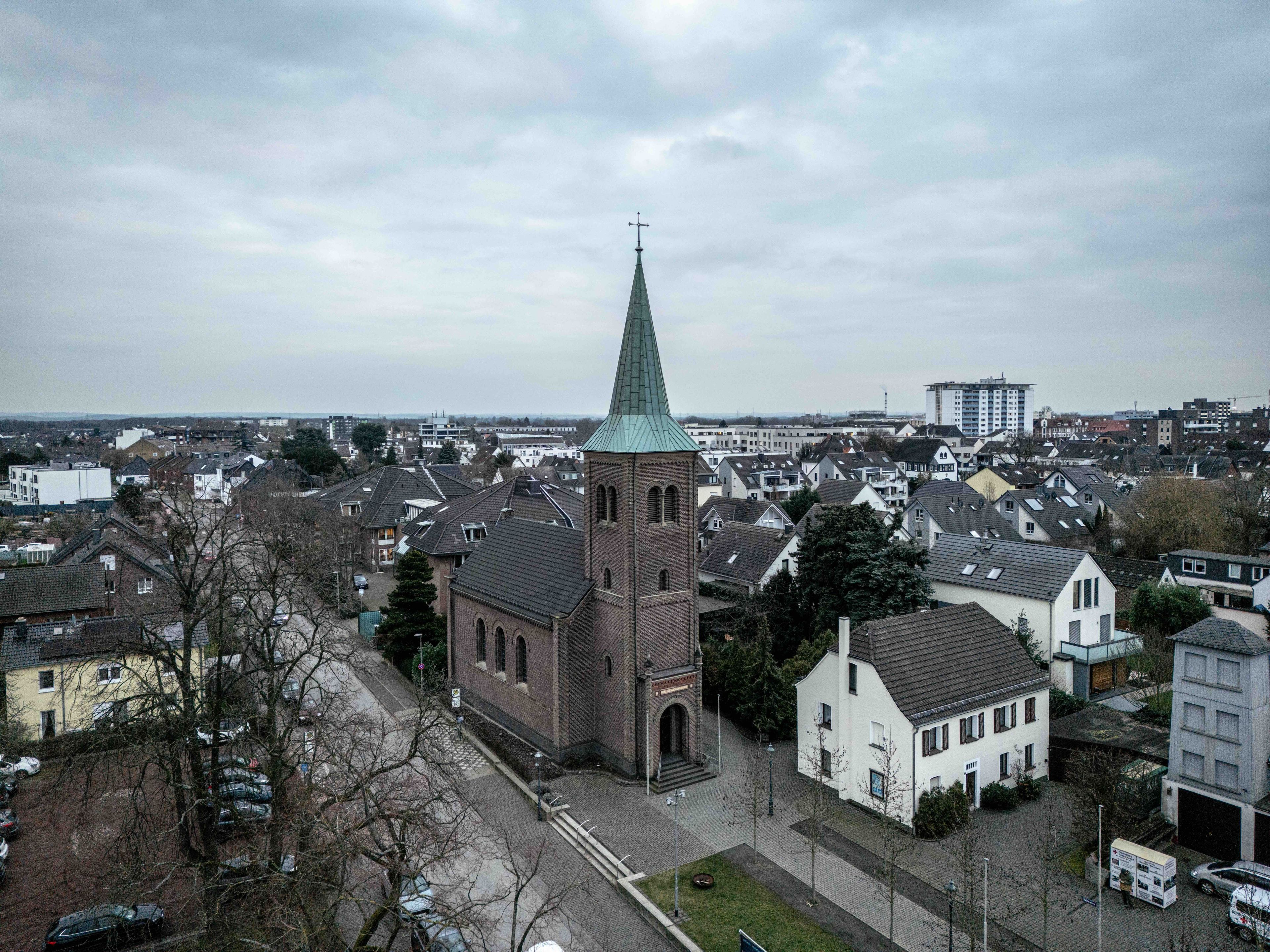 Die im Jahr 1858 errichtete Evangelische Alstadtkirche wurde 2017 renoviert und steht Monheimer:innen für kulturelle Begegnungen offen. Sie war 2020 Ausstellungsort der Klang-Installation „continuum. Aus dem Inneren des Stroms“ von Frank Schulte.